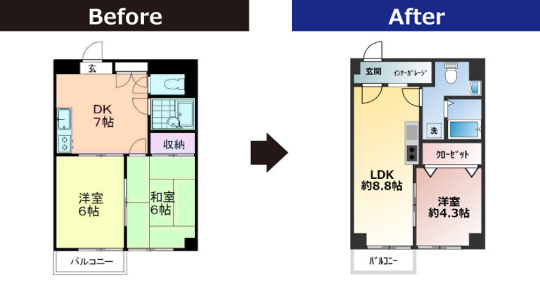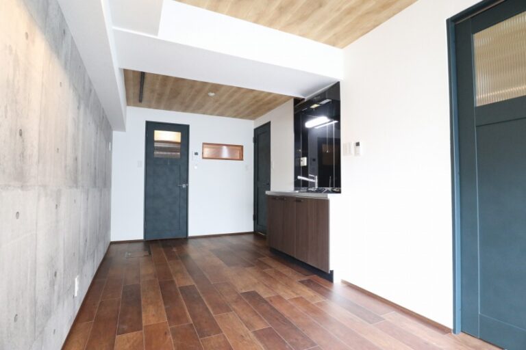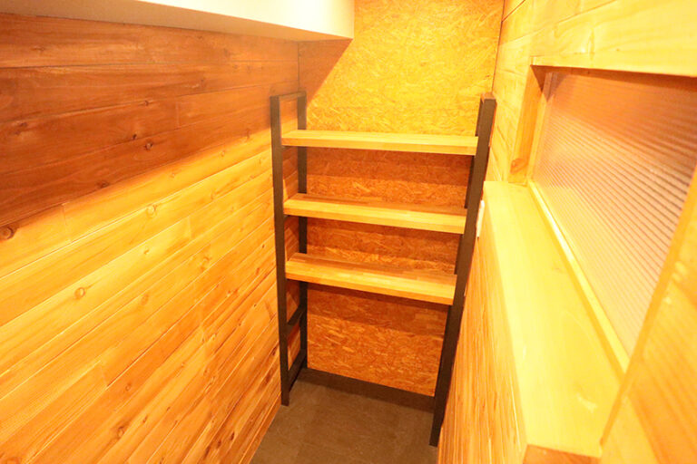 2023年フルリノベーション実施。間取りを2DKから1LDK変更しました。玄関スペースに木材で仕上げた壁や可動棚、ガルバリウム鋼板の天井などでガレージ感を強く出したインナーガレージを設け、アクティブなライフスタイルにマッチしたお部屋作りとなっています。自転車の駐輪スペースとしてもご利用いただけます。宅配ボックスも完備、不在時でもお荷物受け取りが楽にできます。