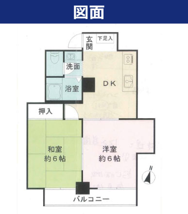 2DK 専有面積(壁芯)36.9㎡