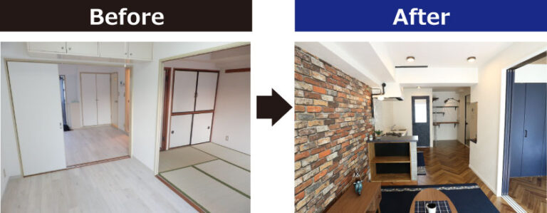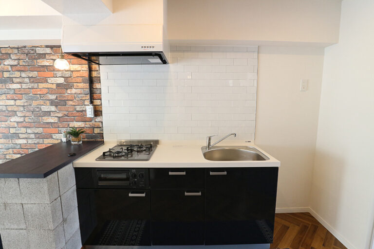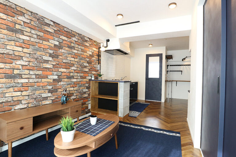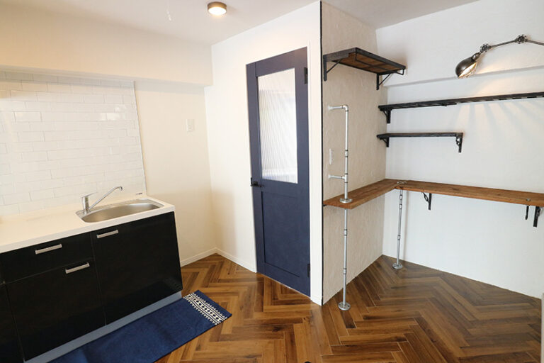 海外のスタイルをイメージしたインダストリアル系の内装にし、ブロックを使用したカウンターやキッチンに使用したタイルのほか、「この部屋に住みたい!」と思わせる部屋作りを実践しました。賃料も大幅に向上し、空室期間のほぼ出ないお部屋となりました。