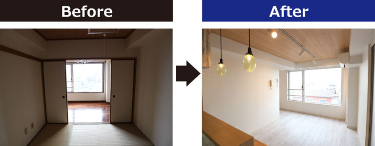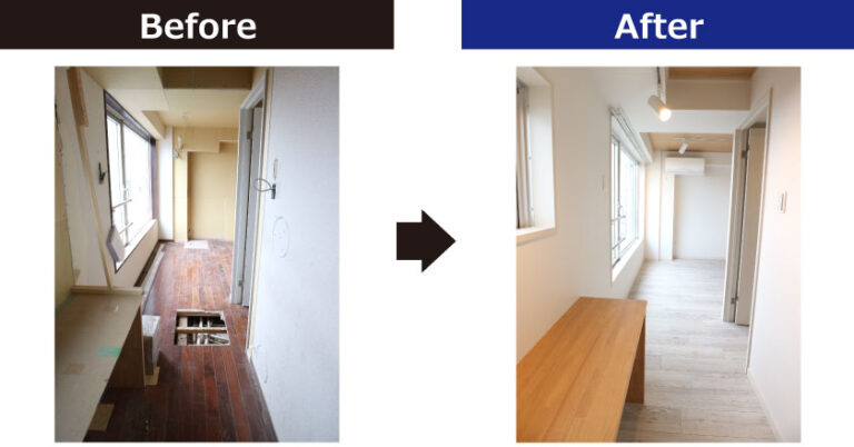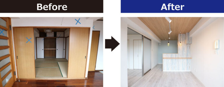 キッチンの配置を大きく変更し、広々明るいLDKに生まれ変わりました。