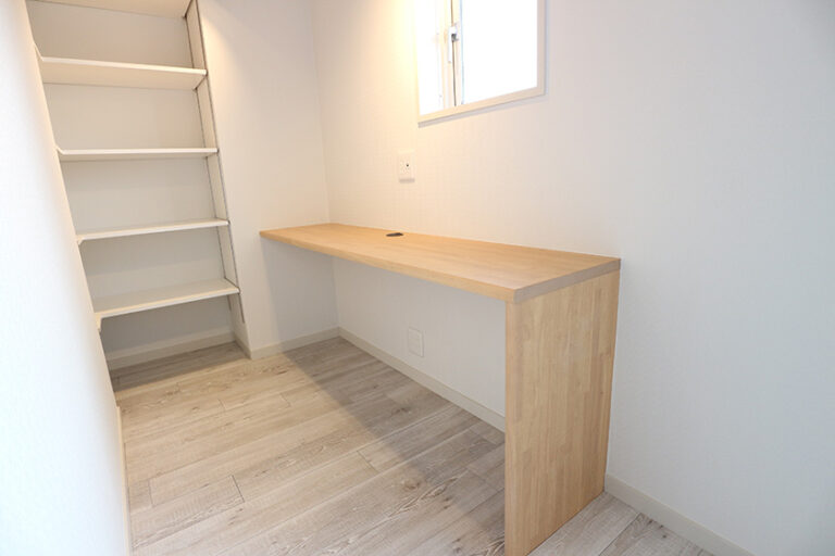 デッドスペースになりがちな空間を、ワークスペースとして有効利用をしました。