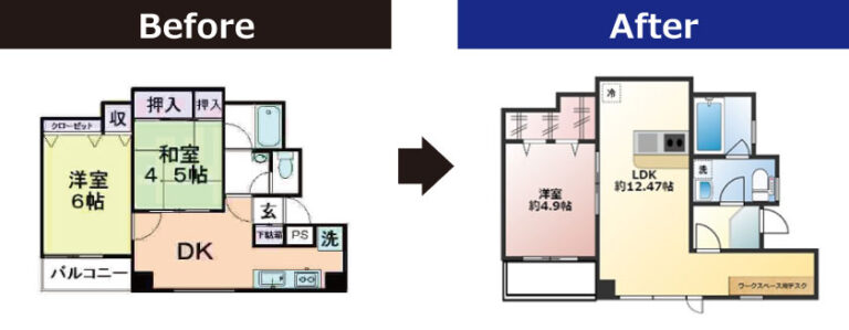 物件を選ぶ際に、重要視するこだわりの条件として、駅近、オートロック、RCと建物としてのポテンシャルを最大限引き出すべく、2DKからウォークインクローゼットやワークスペースを確保した1LDKへフルリニューアル。時代のニーズである、在宅ワークやオンライン授業にも対応し、人を呼びたくなるようなお部屋が完成しました。