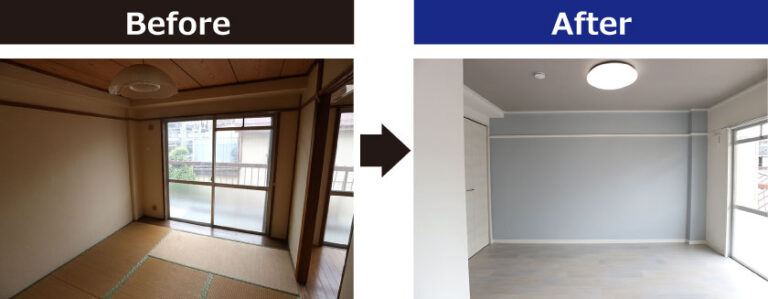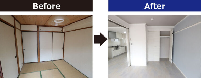 和室から洋室へリノベーションすることで、お部屋の雰囲気が大きく変わります、また洋室には「掃除が簡単でダニやカビの発生を抑えやすい」「畳や障子などがないため定期的なメンテナンスが必要ない」といったメリットがあります。