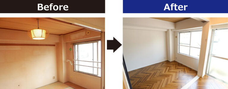 和室から洋室へリノベーションすることで、お部屋の雰囲気が大きく変わります、また洋室には「掃除が簡単でダニやカビの発生を抑えやすい」「畳や障子などがないため定期的なメンテナンスが必要ない」といったメリットがあります。