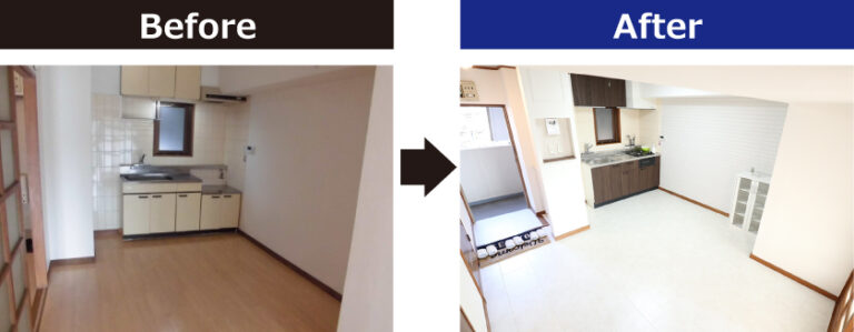 2年~4年で入退去が繰り返される賃貸住宅では退去後の原状回復工事を安価に済ませるのも重要な点です。フロアタイルなら色や柄の種類も豊富でデザイン性が高く、クッションフロアと違い跡が付きにくいためコストパフォーマンスの高いリフォームと言えます。